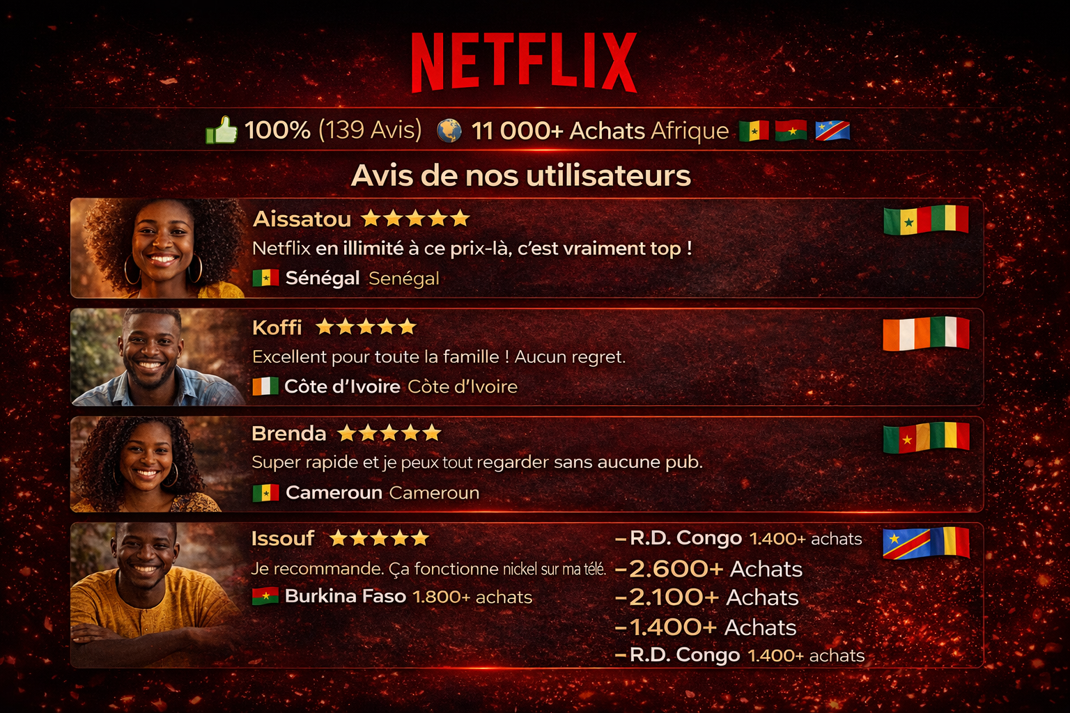 🎯 Offre limitée – Réservez votre accès maintenant et profitez de Netflix sans limites pendant 12 mois.